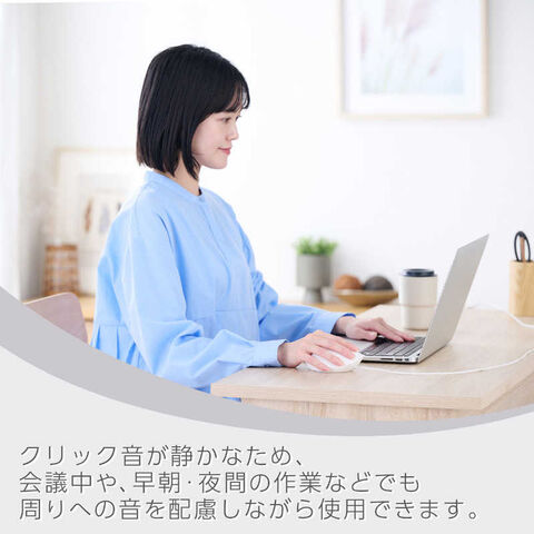 クリック音が静かなため、ミーティング中やリビング・カフェ、シェアオフィスなど周りに人がいる場面でも音を気にせず使えます。