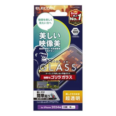 エレコム ELECOM iPhone 16 Pro(6.3インチ) ガラスフィルム 動画映え ゴリラ0.21mm PMCA24CFLGARO