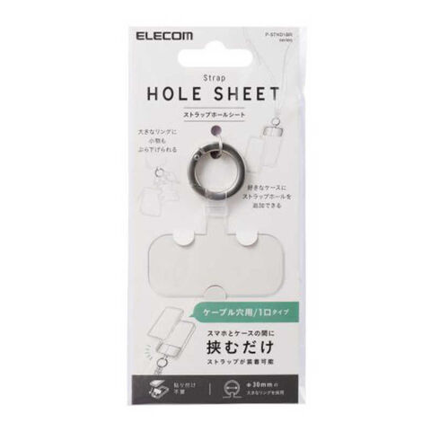 スマートフォンとケースの間に挟むだけでストラップホールを追加できる、1口タイプのストラップホールシートです。