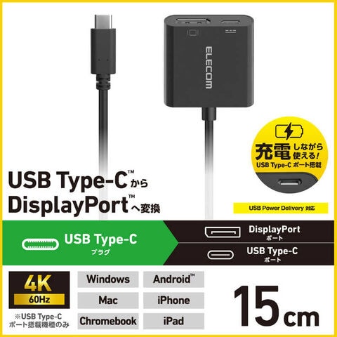 エレコム ELECOM USB Type-C - DisplayPort 変換 USB-C プラグ to DP ( ディスプレイポート )×1 USB-C充電ポート×1 ブラック AD-CDPPDBK2