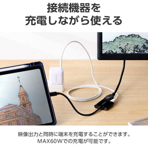 本製品搭載のUSB Type-Cポート(充電専用)に、USB Power Delivery対応AC充電器などを接続することで、映像出力と同時に端末を充電することができます。