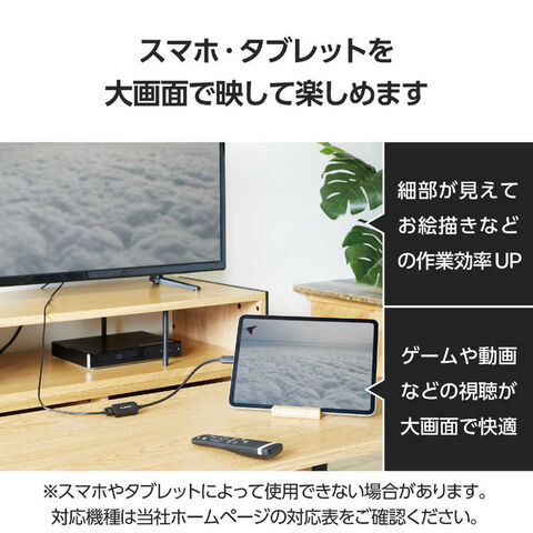 USB Type-C(TM)ポート搭載スマートフォンなどの映像信号を、HDMIコネクター搭載ディスプレイなどに映像を出力することができ、画面複製と画面拡張に対応しています。