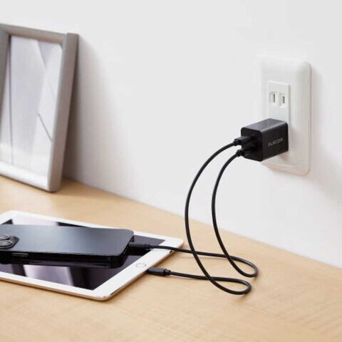 USB Type-C(TM)ポートを2ポートを搭載し対応するスマートフォン、タブレットなどを超高速充電できるUSB AC充電器です。