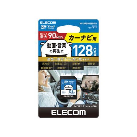 エレコム ELECOM SDカード SDXC 128GB Class10 UHS-I U3 V30 A2 読込最大90MB/s ( カーナビ/ 監視カメラ 対応 ) 高耐久モデル MF-DRSD128GU13