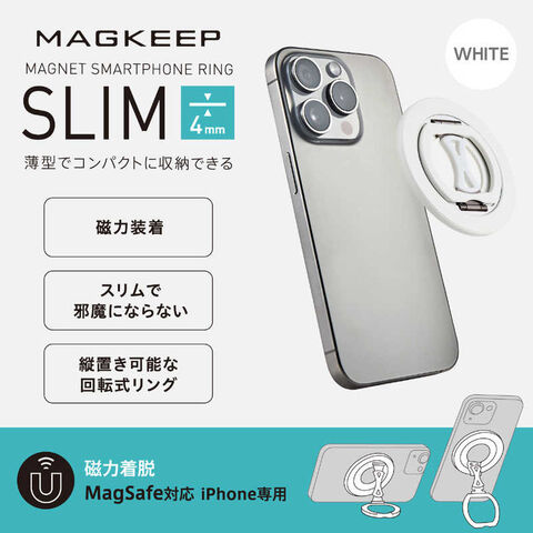 MagSafe対応iPhoneの背面に磁石の力で取り付けることができる、MAGKEEPスマホリングです。