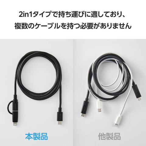 エレコム ELECOM 2in1 充電ケーブル USB-C to USB-C ケーブル + Lightning 変換プラグ 1.5m PD対応 60W 急速充電 ブラック MPA-CCLAD15BK