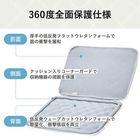 天面、底面、側面それぞれにクッション材を搭載した、360度全面保護仕様。