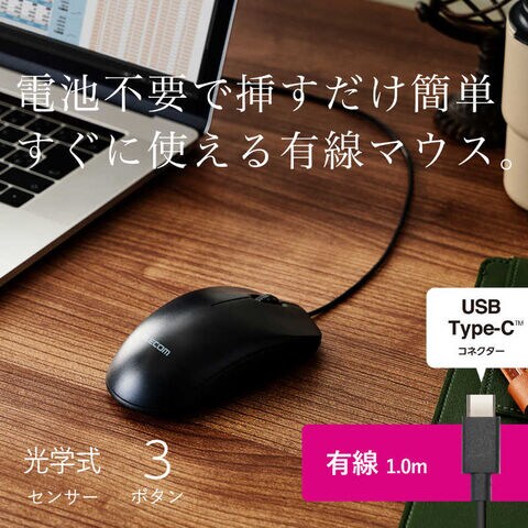 エレコム ELECOM マウス Lサイズ [光学式 /有線 /3ボタン /USB (Type-C)] ブラック M-LE10URCBK