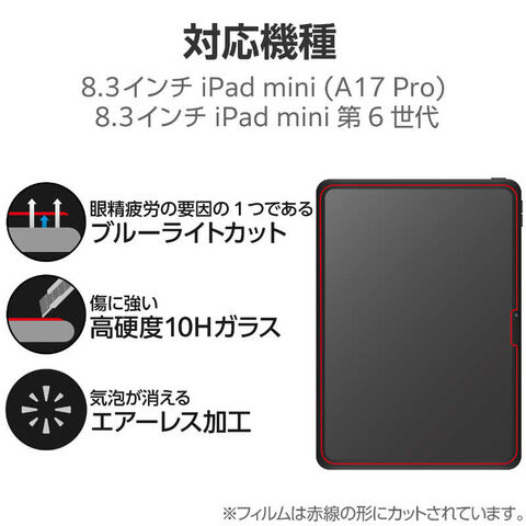 ●ガラス特有のなめらかな指滑りを実現するブルーライトカットタイプのiPad mini(2024年モデル)用画面保護ガラスフィルムです。