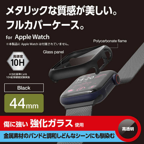 エレコム ELECOM アップルウォッチ カバー SE(第2/1世代)/Series6/5/4[44mm]フルカバー ケース 強化ガラス 表面硬度10H 全面保護 指紋防止 飛散防止 メタリック 2重構造 ブラック AW-23DFCGPBK