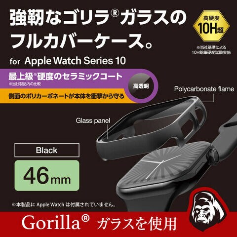 エレコム ELECOM アップルウォッチ カバー [46mm] フルカバー ケース セラミックコート ゴリラガラス ブラック AW-24AFCGOCBK