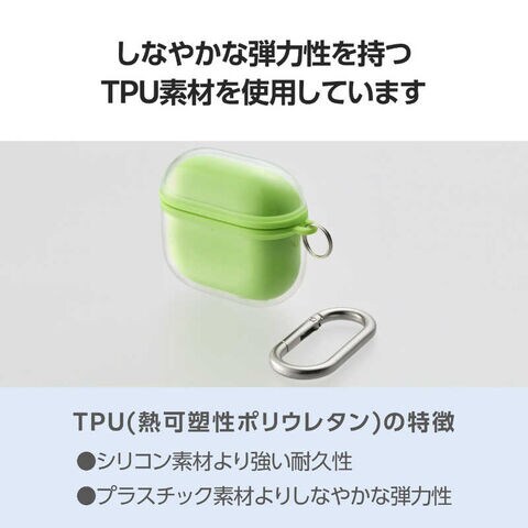仕様1:■対応機種:AirPods 第4世代、アクティブノイズキャンセリング搭載AirPods 第4世代■セット内容:ケース本体×1、カラビナ×1■材質:ケース本体:TPU(熱可塑性ポリウレタン)、カラビナ:亜鉛合金■カラー:グリーン