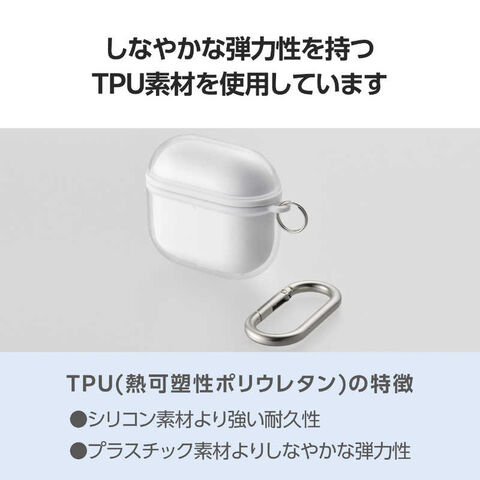 仕様1:■対応機種:AirPods 第4世代、アクティブノイズキャンセリング搭載AirPods 第4世代■セット内容:ケース本体×1、カラビナ×1■材質:ケース本体:TPU(熱可塑性ポリウレタン)、カラビナ:亜鉛合金■カラー:ホワイト