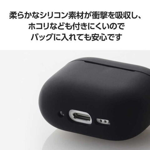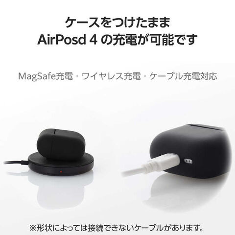 エレコム ELECOM AirPods 4 ケース 用 シリコン カバー ワイヤレス/ MagSafe カラビナ付 ブラック AVA-AP06SCBK