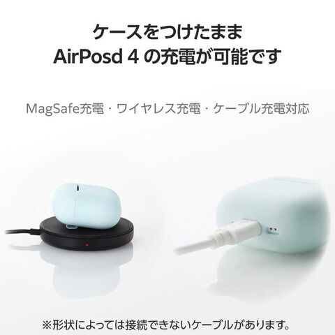 エレコム ELECOM AirPods 4 ケース 用 シリコン カバー ワイヤレス/ MagSafe カラビナ付 ブルー AVA-AP06SCBU