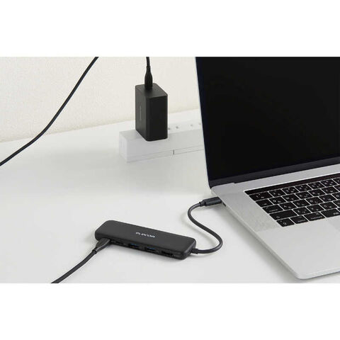 USB Type-C電源アダプターを接続することで、本製品を経由し、パソコン本体を充電することができます。