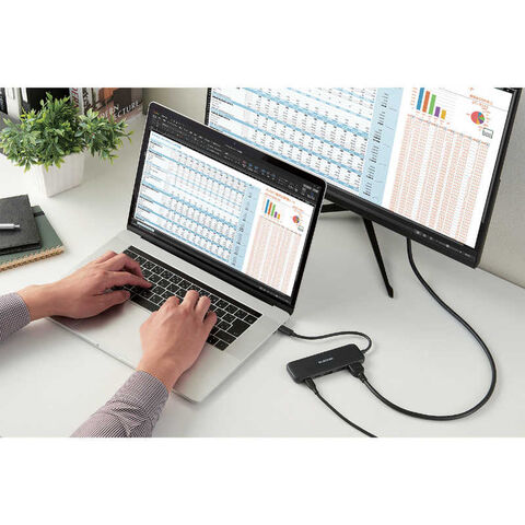 USB Type-C(TM)コネクターでパソコンに接続し、USB機器やHDMIディスプレイを接続できるドッキングステーションです。