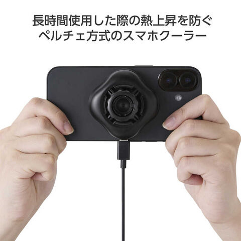 ゲームや動画撮影中に端末を長時間使用した際の熱上昇を防ぐ、ペルチェ方式のスマホクーラーです。