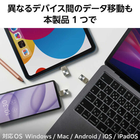 Windows パソコン、Mac、スマートフォン、タブレットなど異なるデバイス間のデータ移動も本製品1個でできます。