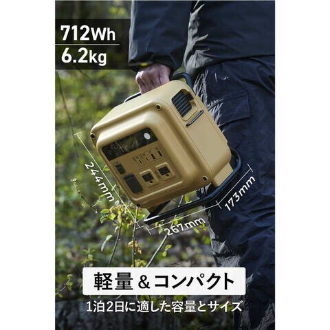 容量700Wh台のポータブル電源では最小・最軽量クラスを実現。