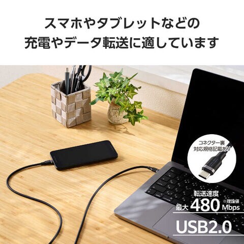 スマートフォンもパソコンも、これ1本で高速充電!やわらかく扱いやすいUSB Type-C(TM) - USB Type-Cケーブルです。