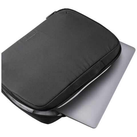 本体背面に、書類などの薄いものの収納に便利なスリーブポケットを備えています。