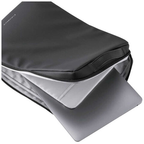 本体背面に、書類などの薄いものの収納に便利なスリーブポケットを備えています。