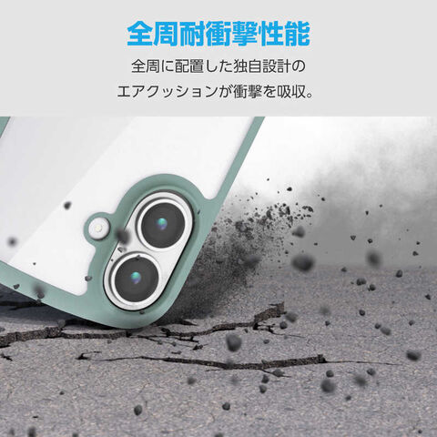 エレコム ELECOM iPhone 16e TOUGH SLIM LITE フレーム メタルステッカー付 グリーン PMA25STSLFCGN
