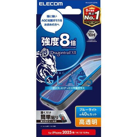 エレコム ELECOM iPhone 16e/ 14/ 13/ 13Pro ガラスフィルム ドラゴントレイル 高透明 ブルーライトカット PMA25SFLGDTBL