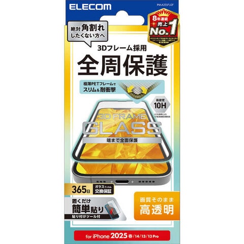 エレコム ELECOM iPhone 16e/ 14/ 13/ 13Pro ガラスフィルム フレーム付き 高透明 PMA25SFLGF