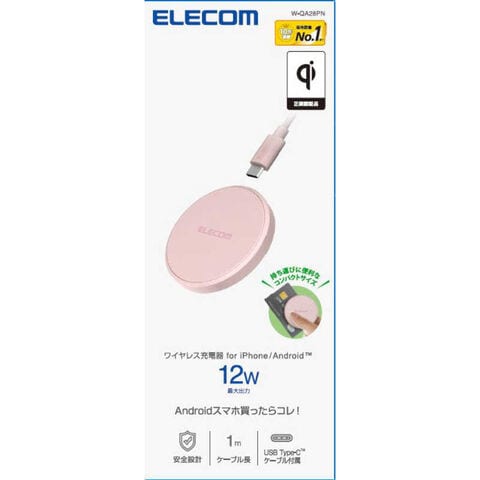 エレコム ELECOM ワイヤレス充電器 Qi 認証 12W/ 10W/ 7.5W/ 5W 卓上 充電器 ケーブル付属 1m 置くだけ充電 薄型 コンパクト ピンク W-QA28PN