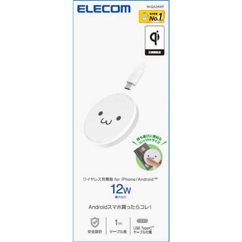 エレコム ELECOM ワイヤレス充電器 Qi 認証 12W/ 10W/ 7.5W/ 5W 卓上 充電器 ケーブル付属 1m 置くだけ充電 薄型 コンパクト しろちゃん W-QA28WF