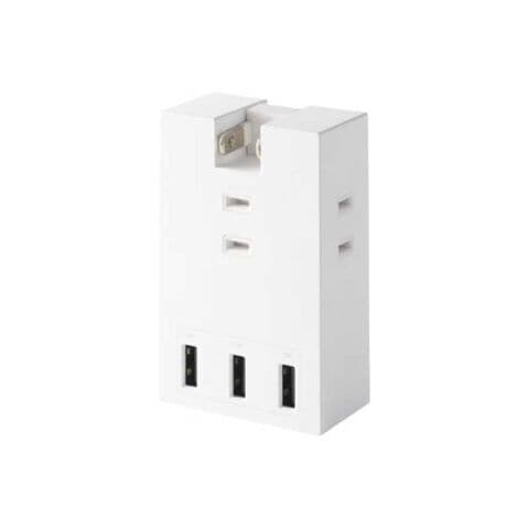 エレコム ELECOM 電源タップ USB タップ 直挿し コンセント 3口 USB-A ×3 コンパクト 雷ガード ほこり防止シャッター 絶縁キャップ PSE適合 ホワイト T-U07-3A3WH