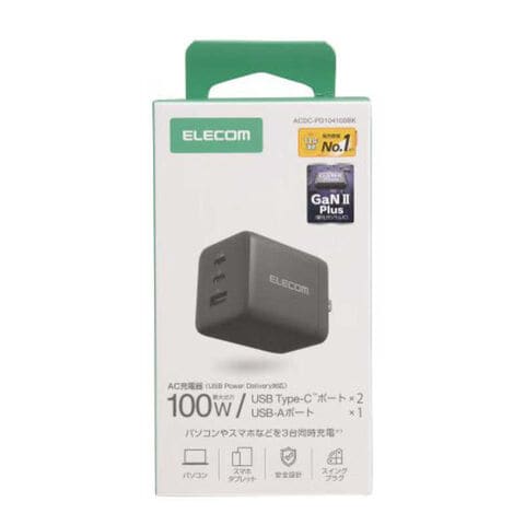 エレコム ELECOM 充電器 PD 100W / PPS対応 高速充電 3ポート USB-C ×2 / USB-A ×1 GaN II採用 PSE認証 コンパクト 折りたたみ式プラグ ACDC-PD104100BK