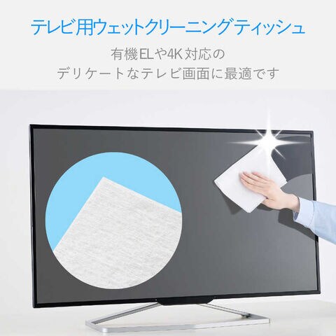 デリケートなテレビ画面にも安心して使える、ノンアルコールタイプの有機EL/4K大型テレビ向けウェットクリーニングティッシュです。