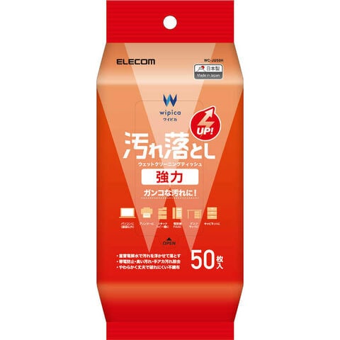 エレコム ELECOM ウェットティッシュ 強力汚レ落トシ ハンディ 50枚 WC-JU50H