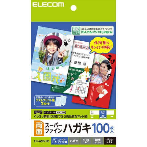 エレコム ELECOM ハガキ 用紙 スーパーファイン紙 厚手 0.22mm 両面印刷対応 インクジェット用 EJH-WSFN100