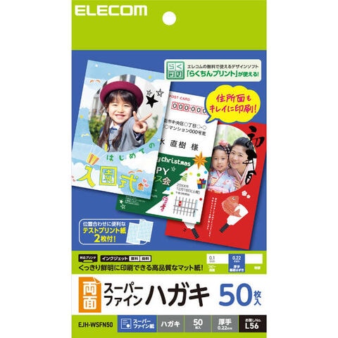 エレコム ELECOM ハガキ 用紙 スーパーファイン紙 厚手 0.22mm 両面印刷対応 インクジェット用 EJH-WSFN50