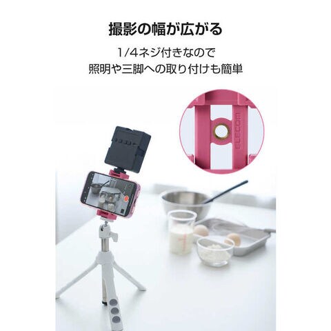 1/4ネジ付きなので、照明や三脚への取り付けも簡単。