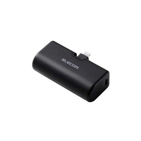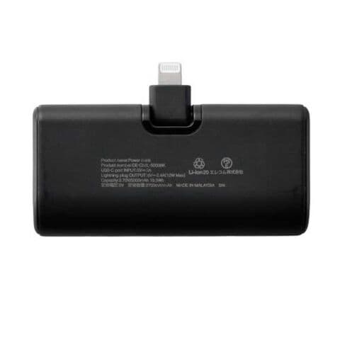 エレコム ELECOM モバイルバッテリー 5000mAh 小型 軽量 Lightning端子一体型 ケーブルレス 折りたたみコネクター ( Lightningポート搭載 iPhone 充電器 ) PSE適合 機内持込可 DE-C58L-5000BK
