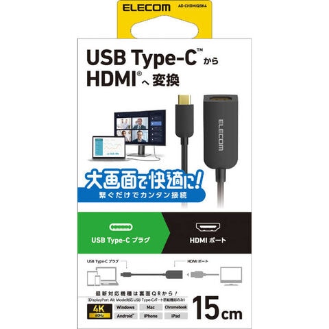 エレコム ELECOM Type-C映像変換アダプタ TypeC-HDMI 60Hz AD-CHDMIQBK4