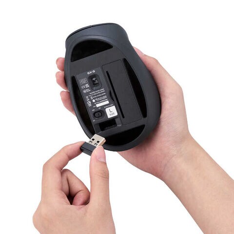 パソコンのUSBポートにレシーバーを挿すだけで、すぐに使用できるワイヤレスタイプです。