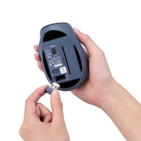 パソコンのUSBポートにレシーバーを挿すだけで、すぐに使用できるワイヤレスタイプです。