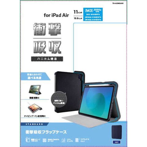 エレコム ELECOM iPadAir11インチ (M3 M2) フラップケース 衝撃吸収 ApplePencil収納 スリープ対応 TB-A25MSANV