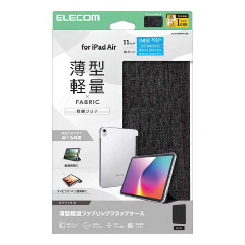 エレコム ELECOM iPad Air ケース 11インチ ( M3 / M2 ) / 10.9インチ 第5世代 第4世代 マグネット式ファブリックフラップ カバー 2アングル 軽量 薄型 背面クリア TB-A25MWVCBK