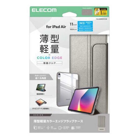 エレコム ELECOM iPad Air ケース 11インチ ( M3 / M2 ) / 10.9インチ 第5世代 第4世代 マグネット式フラップ カバー 2アングル スタンド オートスリープ機能 軽量 薄型 背面クリア TB-A25MWVFCGB