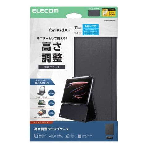エレコム ELECOM iPad Air ケース 11インチ ( M3 / M2 ) / 10.9インチ 第5世代 第4世代 高さ調整フラップ カバー スタンド オートスリープ機能 TB-A25MWVH2BK