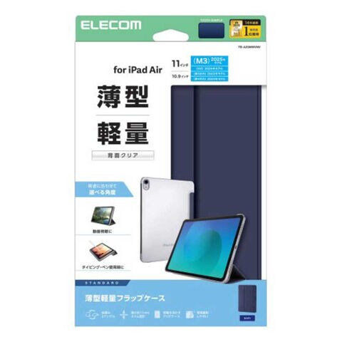 エレコム ELECOM iPadAir11インチ (M3 M2) フラップケース 薄型軽量 背面クリア 2アングル スリープ対応 TB-A25MWVNV