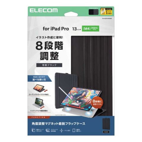 エレコム ELECOM iPad Pro ケース 13インチ ( M4 ) マグネット着脱フラップ カバー 8段階角度調節 スタンド オートスリープ機能 TB-A25PLWVDBK