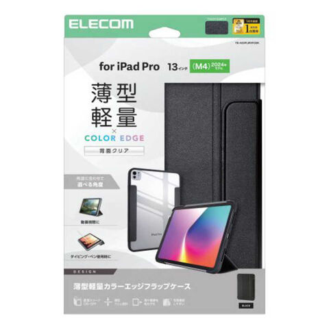エレコム ELECOM iPad Pro ケース 13インチ ( M4 ) マグネット式フラップ カバー 2アングル スタンド オートスリープ機能 軽量 薄型 耐衝撃 背面クリア TB-A25PLWVFCBK